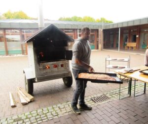 Am 8. Oktober 2025 fand auf dem Pausenhof der Katharinen-Schule eine besondere Aktion statt. Ein Pizzaofen wurde aufgebaut und gleich am Morgen angeschürt.