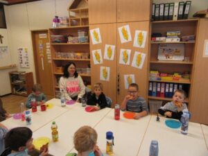 Bei einem gemeinsamen Essen ließen sich die Kinder anschließend die frisch gebackene Pizza schmecken.
