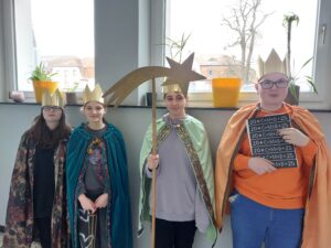 Auch in diesem Jahr haben Schülerinnen und Schüler der Saaletal-Schule gemeinsam einen Erntedank-Gottesdienst in der Erlöserkirche gefeiert. Bei einem Gabengang haben Schüler und Schülerinnen der 8. Jahrgangsstufe Gott für die vielen guten Dinge in ihrem Leben gedankt. Das Schülerspiel „Der Hamster Philibert“ der 5./6. Jahrgangsstufe sollte zum Nachdenken über das Teilen anregen. Die Fürbitten der 7. Jahrgangsstufe weiteten den Blick für Menschen in Not. Mit einem Segensspruch endete der Gottesdienst. Musikalisch umrahmt wurde der Gottesdienst von Herrn Kotterba an der Gitarre sowie mit dem Schülerchor von Frau Vieth-Brand. Die Lieder waren flott und fetzig bis nachdenklich und stimmungsvoll.